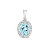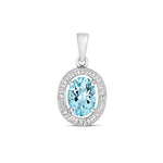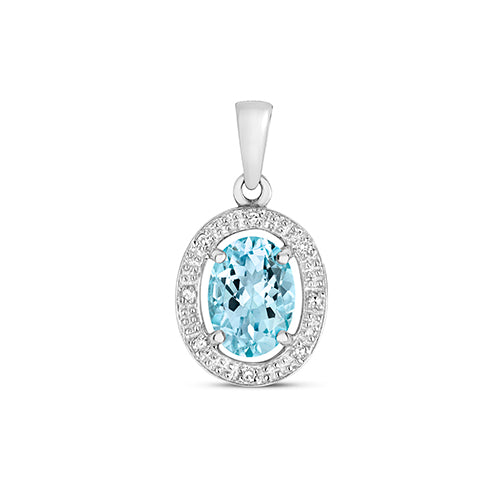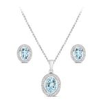 This stunning pendant and earrings set of Aquamarines are circled with a halo of sparkling diamonds. Set beautifully in 9K white gold to display the sparkling sea blue of the aquamarines. Stunningly boxed and gift wrapped for the perfect gift.