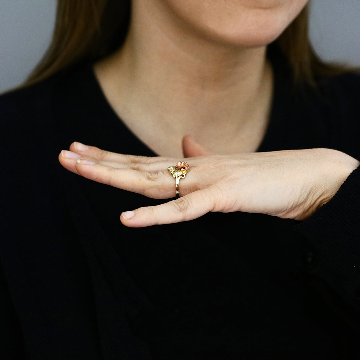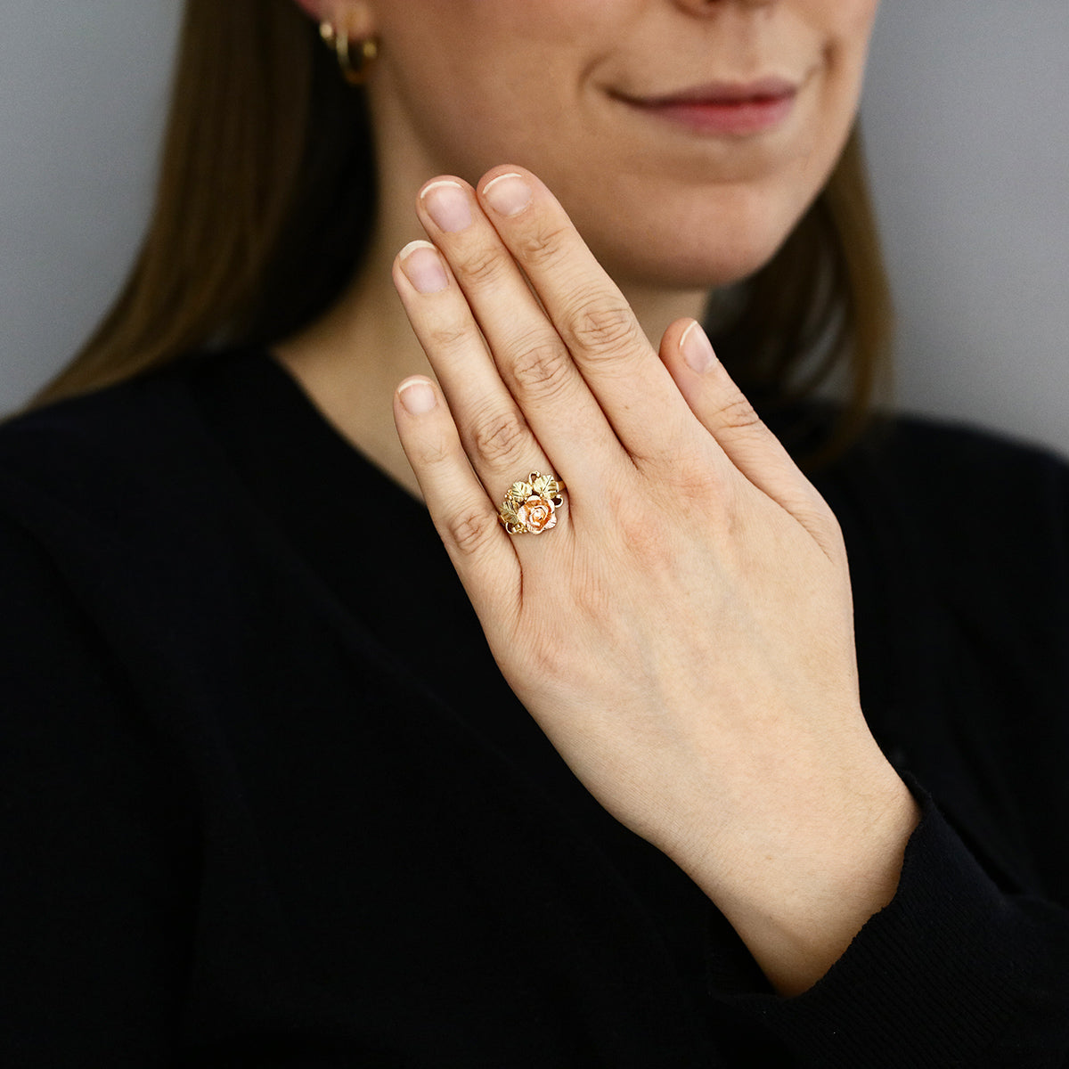 Rose and Leaf Design Dress Ring | Pre-Loved | 9K Rose & Yellow Gold