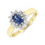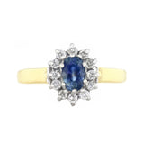Sapphire and 0.06ct Diamond Cluster Ring | Pre-Loved | 9K Yellow Gold
