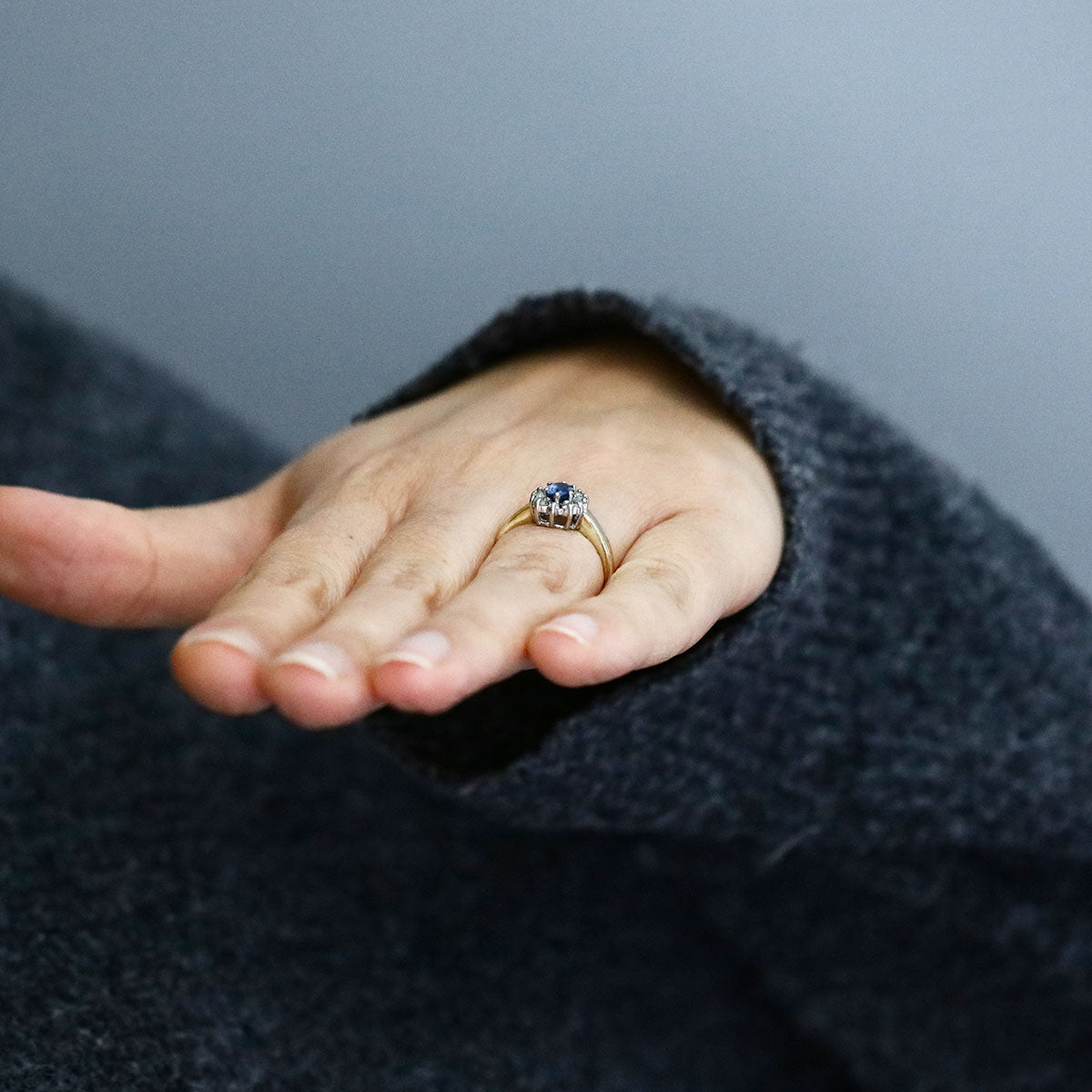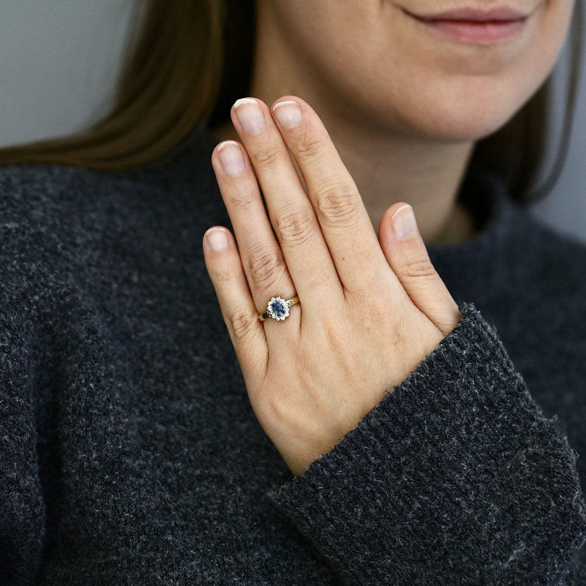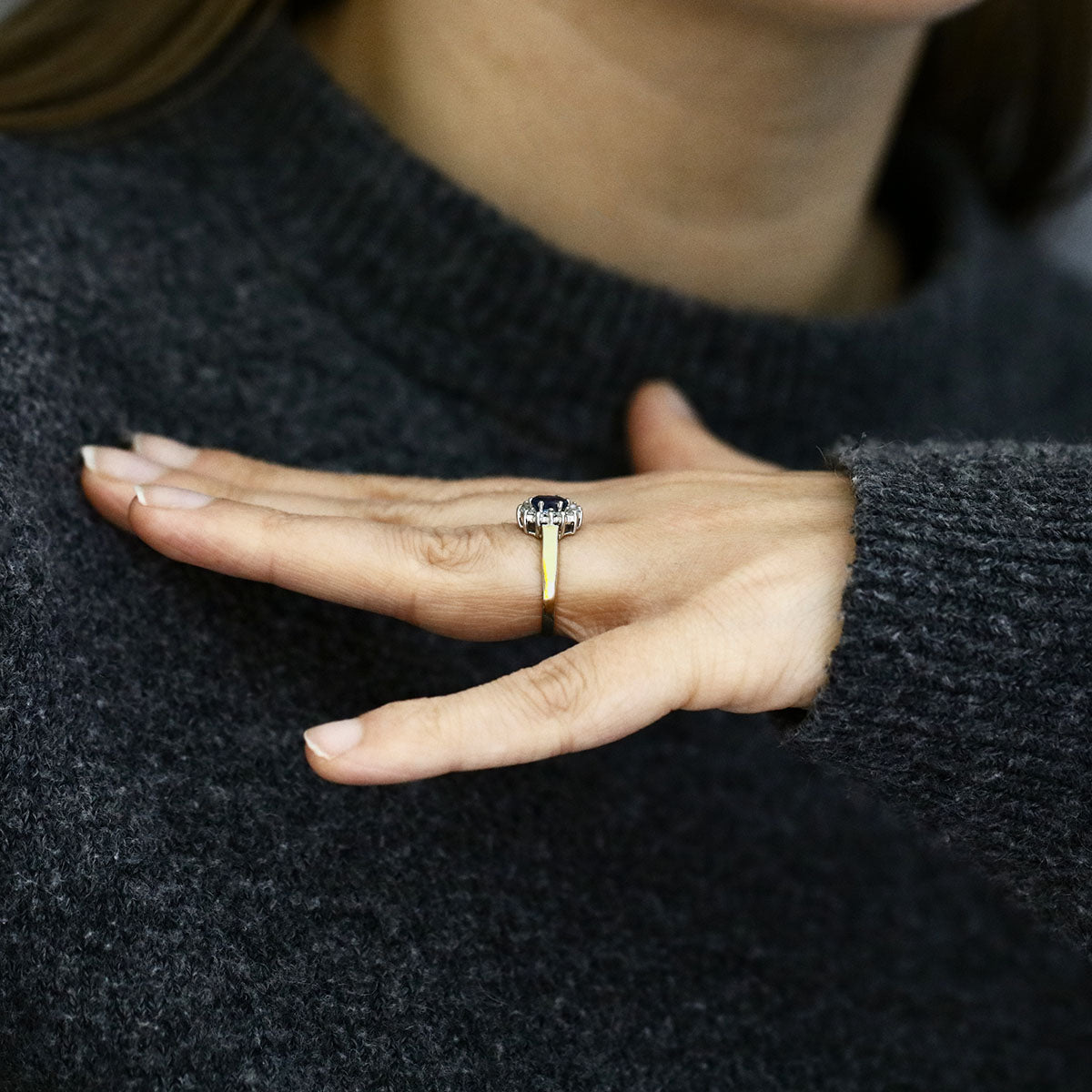 A graceful piece with vintage appeal, this sapphire and diamond cluster ring is a lovely addition to any fine jewellery collection.