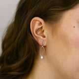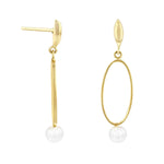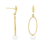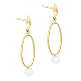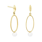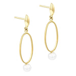 Soleil Collection 5mm Pearl Open Oval Link Drop Earrings | 9K Yellow Gold