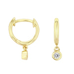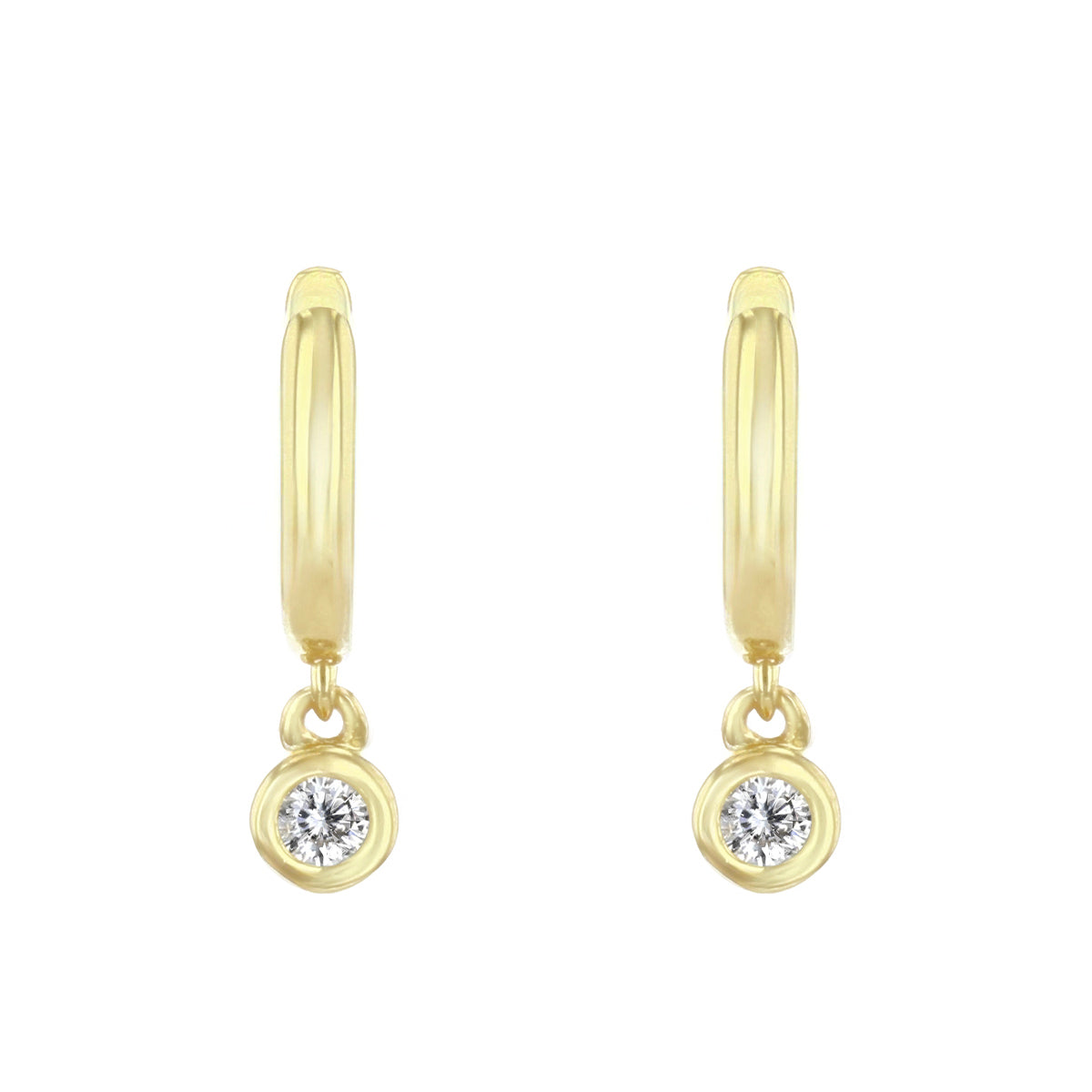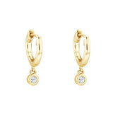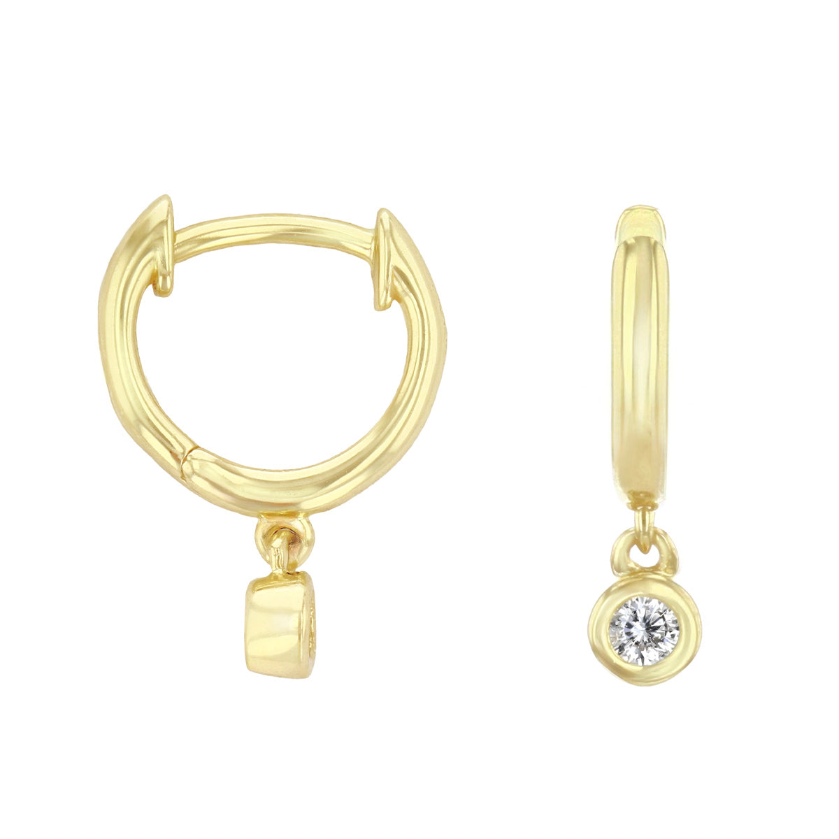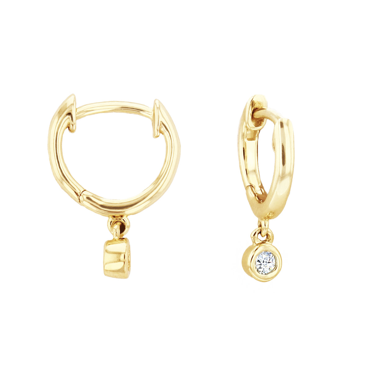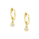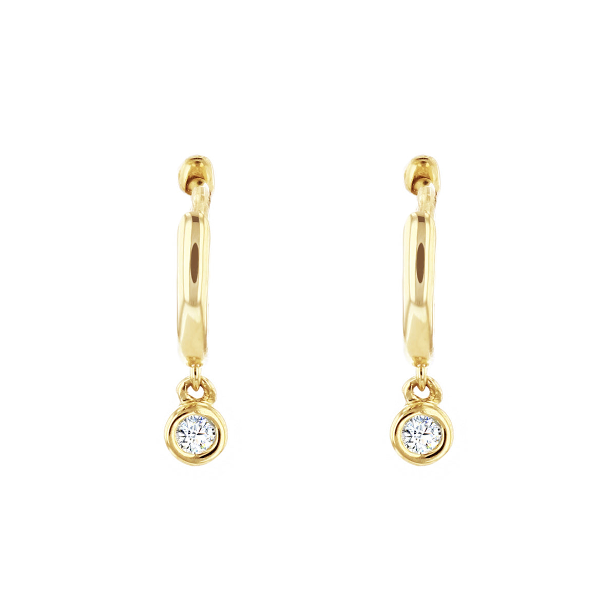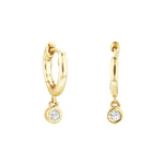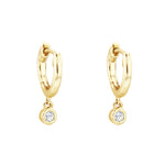 Soleil Collection Diamond Drop Bezel Set Huggie Earrings | 9K Solid Yellow Gold