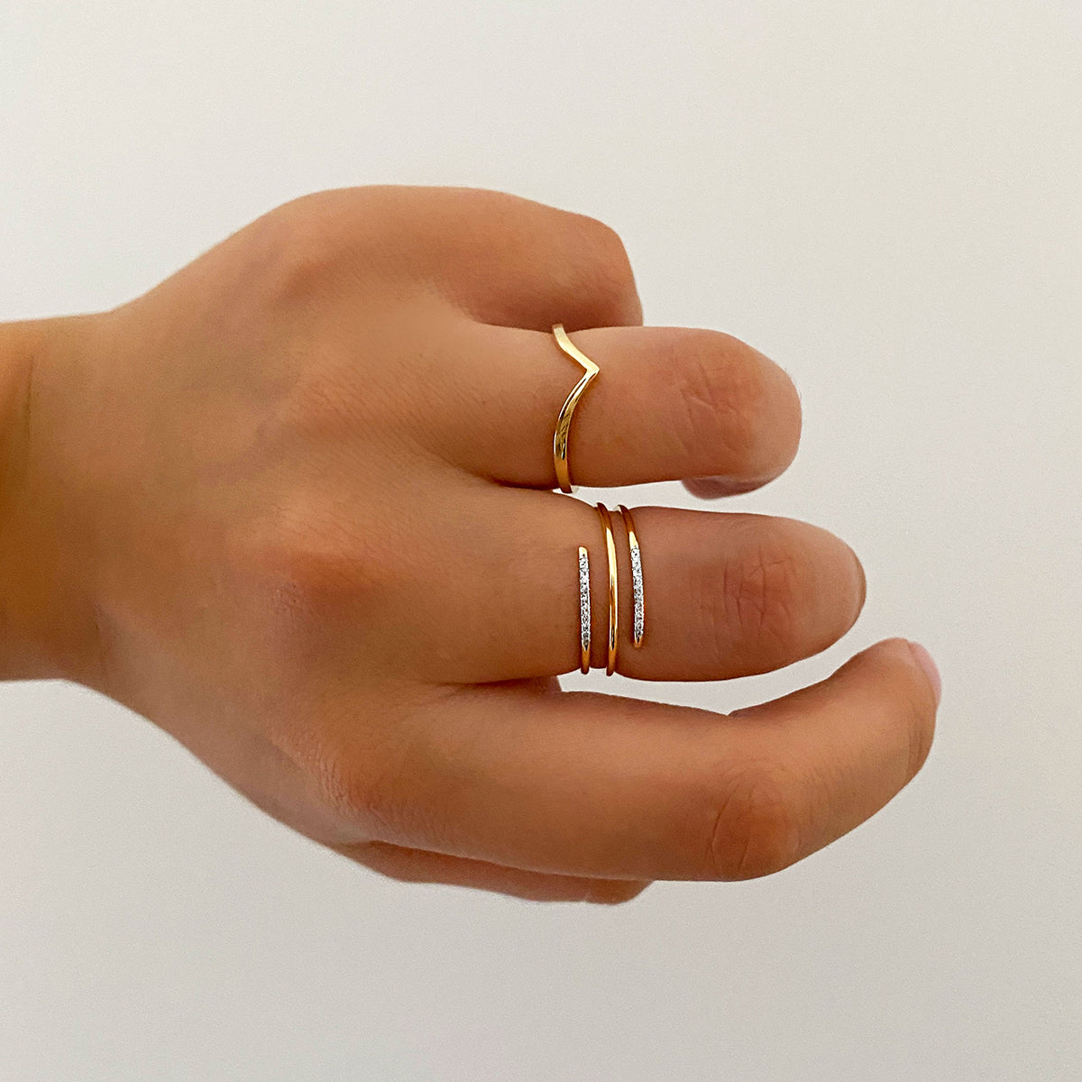Wrap yourself in this delicately elegant Soleil Collection Diamond Spiral Ring. Crafted in solid 9K gold, this ring has a warm subtle hue offset with sparkly diamonds. This gorgeous ring looks wonderful worn alone or layered with other Soleil rings.