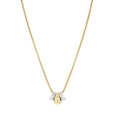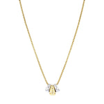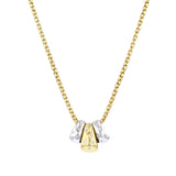 Crafted with a refined eye for contemporary elegance, this pendant from ALD features a distinctive three-element design, combining the warmth of 9K yellow gold with the crisp contrast of white gold. The central gold loop measures 11.5mm in height and 6.3mm in width, flanked by two polished white gold loops (9mm × 5mm), each delicately set with sparkling diamonds for a subtle, sophisticated shimmer.