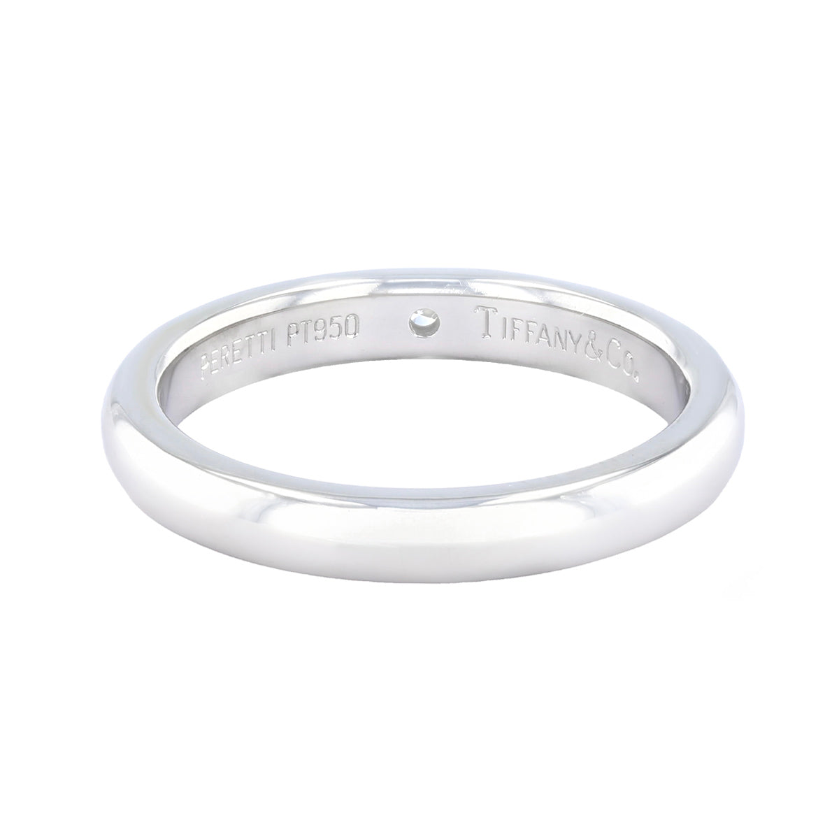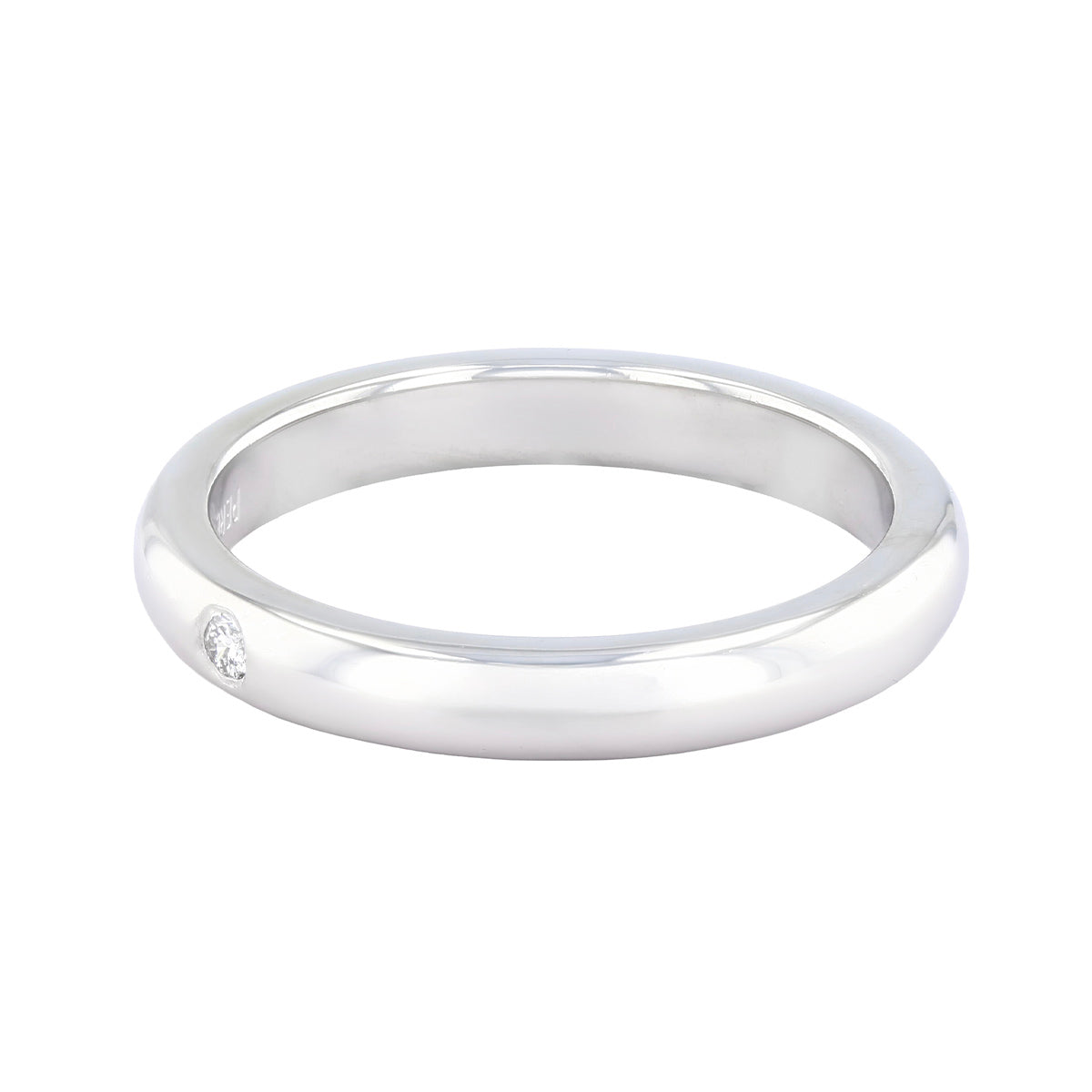 A delicate expression of timeless elegance, this Tiffany diamond-set wedding ring is crafted from platinum with precision and sophistication. Measuring approximately 2mm in width, it features a subtle 0.03ct G/H colour VS clarity diamond that adds a refined sparkle.