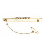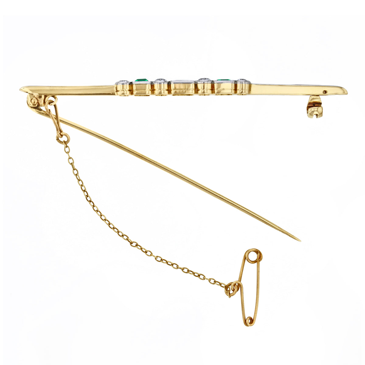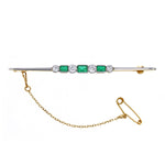 Twentieth Century Synthetic Emerald and Diamond Line Bar Brooch | Pre-Loved | 15K Yellow Gold and Platinum